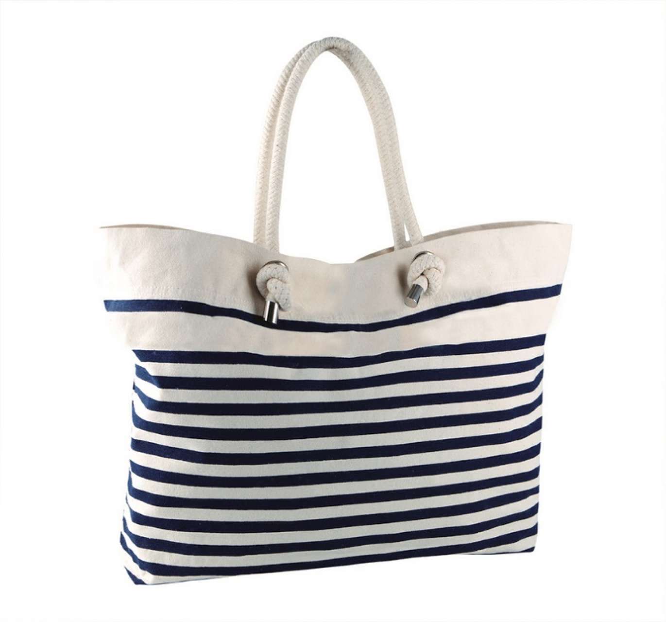 Nagy tengerész stílusú strandtáska pamutvászonból;Pamut kötél fülek;Cipzáras belső zseb;Patenttal záródik;