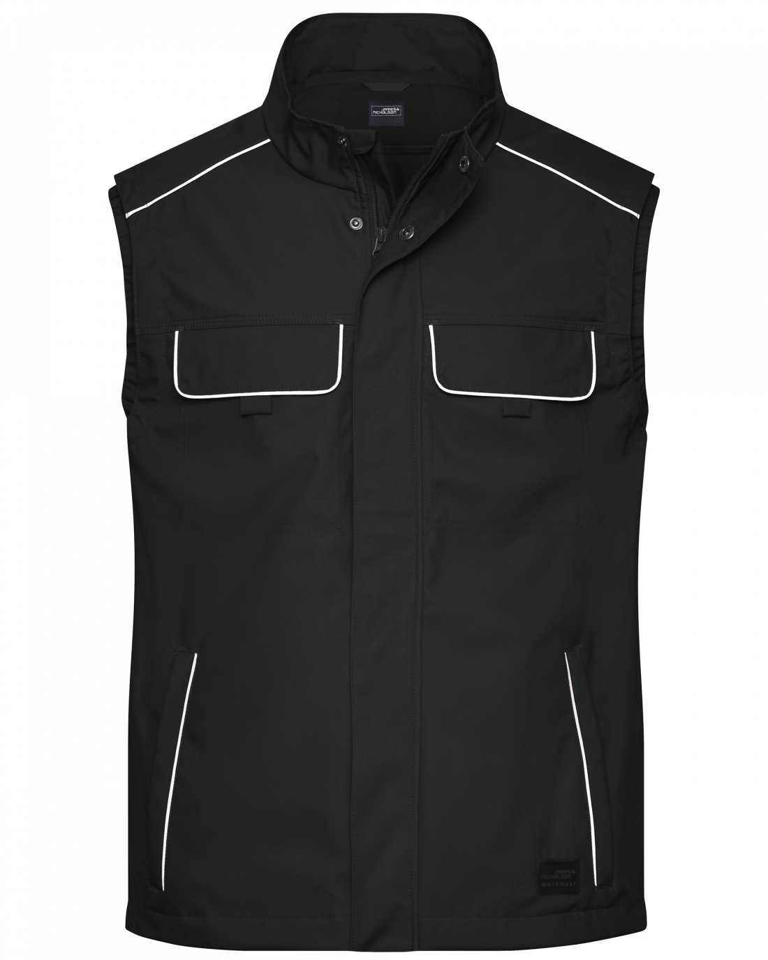 Professzionális, magas minőségű, könnyű softshell mellény Magas minőségű részletekkel Klasszikus szabás Tartósan ellenálló softshell alapanyag interlock belsővel Szél- és vízálló (2000 mm-ig) Légáteresztő és páraelvezető (2000 g/m²/24 óra) Állógallér, hosszított hátoldal, elasztikus gyűrű a karkivágás körül, Teljes hosszában fedett cipzár viharlebennyel és állvédővel Cipzáras oldalzsebekkel és belső zsebbel Tépőzáras mellzsebek, melyek az emblémázhatóság megkönnyítése érdekében belül csak egy oldalon levarrtak Fényvisszaverő díszítés a zsebeken, a vállon és a hátoldalon (védelmi funkció nélkül) Emblémázást megkönnyítő cipzár a hátoldalon YKK cipzár A sérülések elkerülése érdekében valamennyi gomb és cipzár fedett 100% poliészter, 250 g/m² Rendelhető méretek: XS-6XL