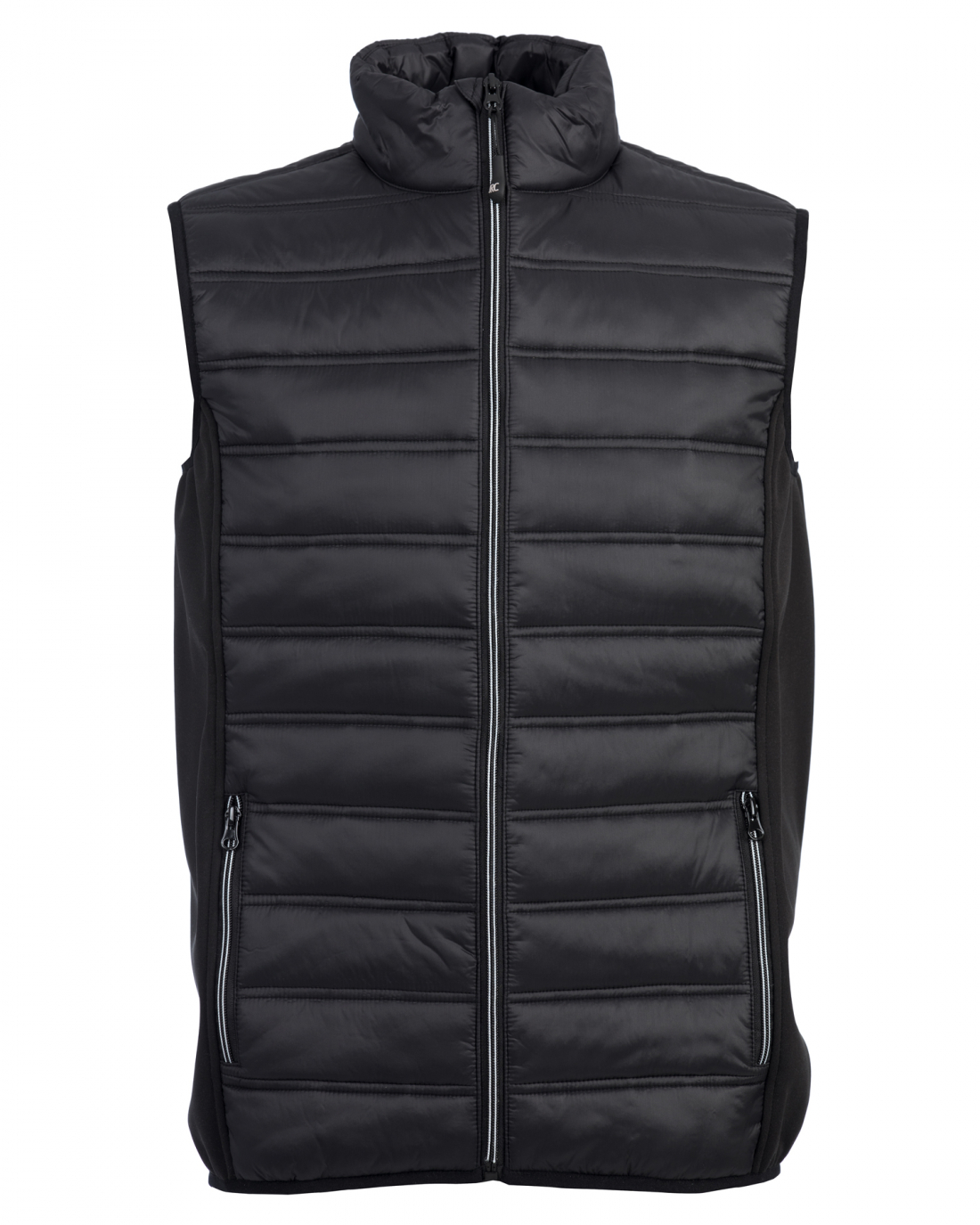 Vízálló hibrid mellény 3000 mm-ig vízálló, lélegző (1000 g/m²/24h) Cipzárak kontrasztos díszítéssel 2 db cipzáras oldalzseb 2 db belső zseb Elasztikus karkivágás és derékrész Első és hátsó panelek: 20D nejlon puha poliészter béléssel Oldalsó panelek: 3 rétegű softshell anyag TPU membránnal Rendelhető méretek: S-3XL (navy XS-4XL)
