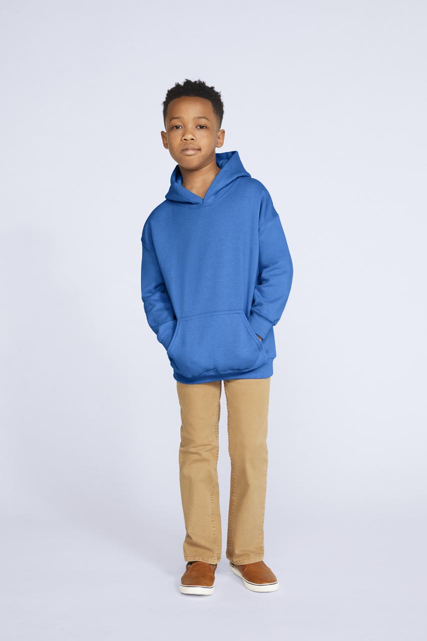271.0 g/m2 (White 257 g/m2); 50% pamut / 50% poliészter; Air jet fonal = puhább tapintás és bolyhosodás mentes; Dupla tűzésű kapucni; Kitéphető címkére váltás folyamatban; Dupla tűzésű derékrész. vállrész. nyak-és karkivágás; Kenguru zseb; 1x1 Rib kötés. spandex; Gyűrődésmentesítő behajtás; CPSIA követési címke kompatibilis;Ide kattintva letöltheti a GILDAN gyermekruha méretismertetőjét!;