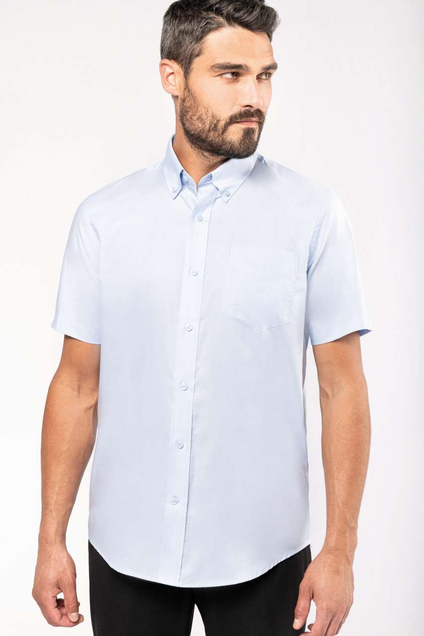 70% Oxford pamut/30% poliészter;Könnyen vasalható szövet;Legombolható gallér;Hozzáillő gombok;V-alakú bal oldali mellzseb;Dupla hátsó vállrész 2 oldalon behajtással;2 pótgomb;Formázott szegély;STANDARD 100 by OEKO-TEX® N° CQ 1007/7. IFTH tanúsítvánnyal;