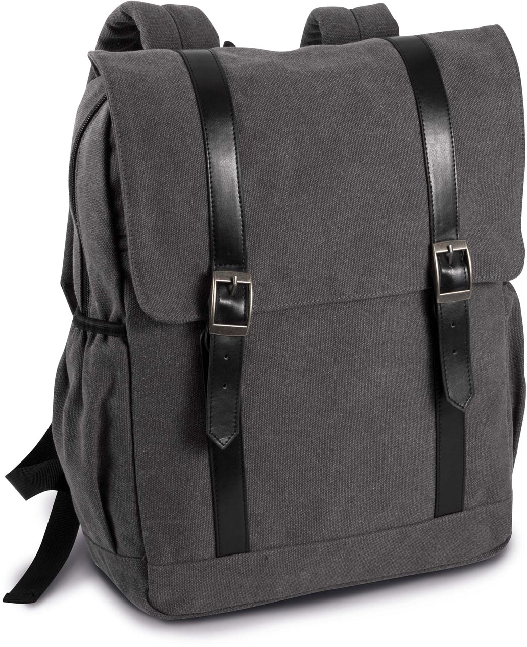 Pamutvászon hátizsák lehajtott fedéllel;Kontrasztos pántok dekoratív fémcsat alá rejtett patenttal;Párnázott belső cipzáras rekesz egy tablet vagy akár egy 13"-es laptop részére;Párnázott ergonomikus vállpántok és hátrész;