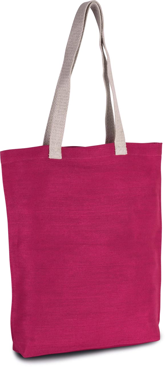 Nagy bevásárlótáska jutavászonból és pamutból (juco) oldalrésszel és 70 cm-es. ekrü színű pamut fülekkel;