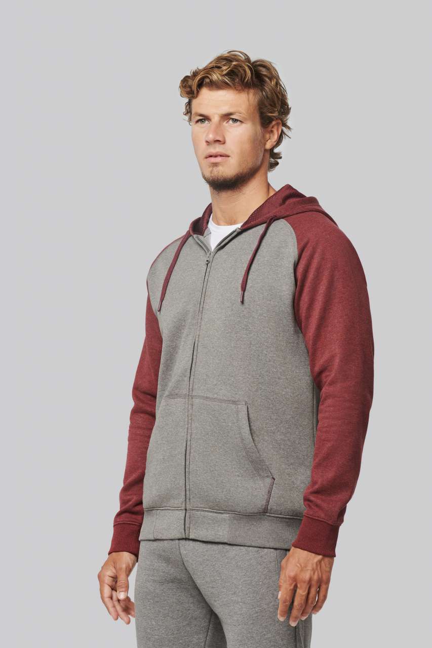 65% poliészter / 35% pamut;Csiszolt polár;Cipzáras záródás;Kontrasztos raglán ujjak és kapucni;Hozzáillő hálós kötött anyaggal bélelt kapucni;Kenguru zsebek fluoreszkáló telefontartó zsebbel;Fülhallgató kimenet;2 x 2 kétrétegű bordázott mandzsetták és szegély;STANDARD 100 by OEKO-TEX®N° CQ1007/7. IFTH tanúsítvánnyal;