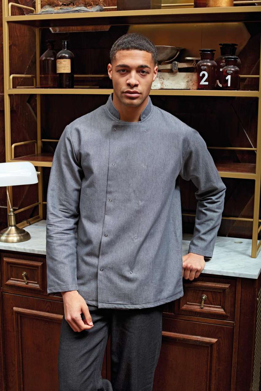 Szövet;60% pamut. 40% poliészter twill;230 g/m2;Tulajdonságok;Átlapolós elülső záródás;Tíz patenttal záródik;Mandarin állógallér;