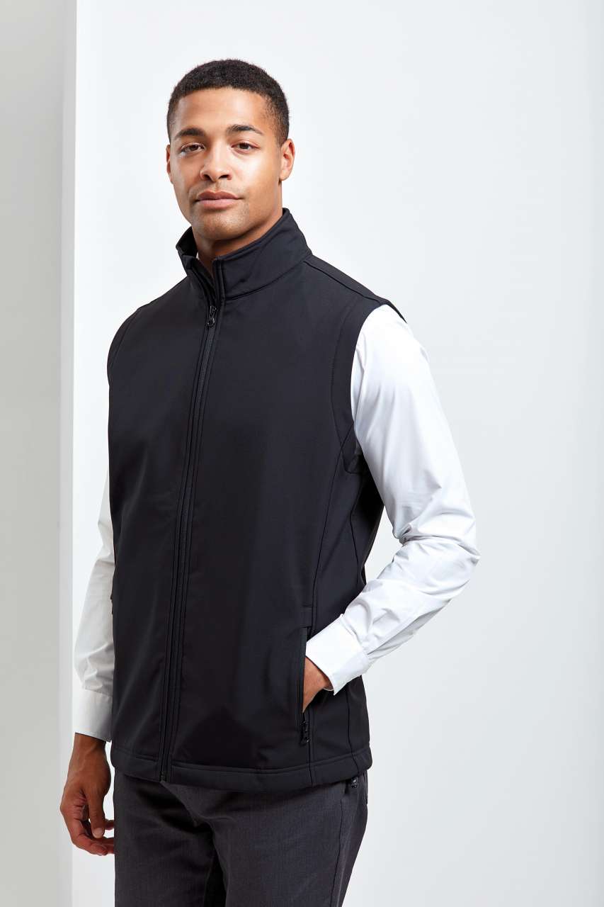 100% újrahasznosított poliészter. 280 g/m2;Kétrétegű végig cipzáras softshell mellény ragasztott polár belső réteggel;Cipzáras oldalzsebek;Két praktikus belső rávarrt zseb;Rugalmas húzózsinór a szegélyen;Újrahasznosított poliészter 24 db. használat utáni műanyag palackból;Global Recycled Standard (GRS) tanúsítvánnyal;