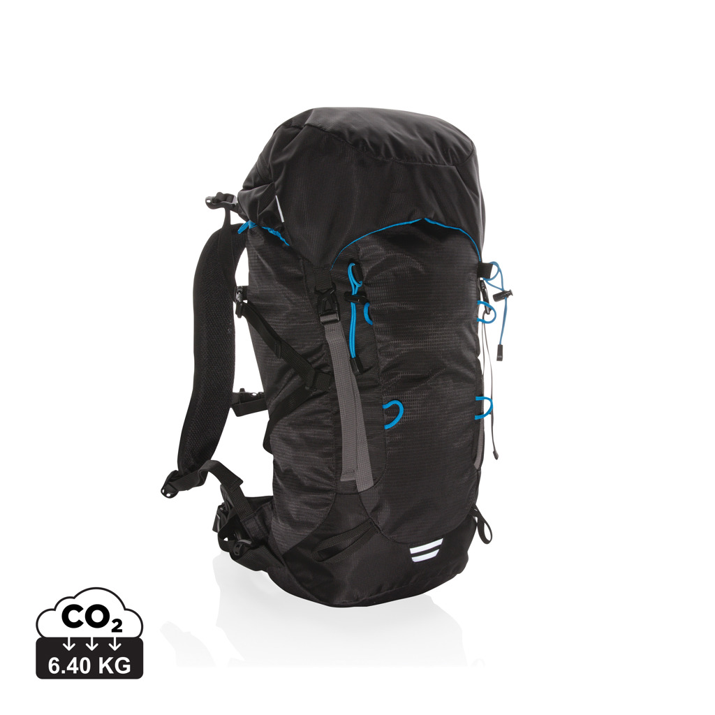 Sportos kialakítású túrahátizsák időtálló poliészter anyagból. Külön kialakított hellyel ivótasak vagy laptop számára, rögzítő hurkokkal, tetején zsebbel valamint része egy esővédő huzat is. Kontrasztos alkotóelemeinek köszönhetően színes és sportos útitárs. PVC-mentes.