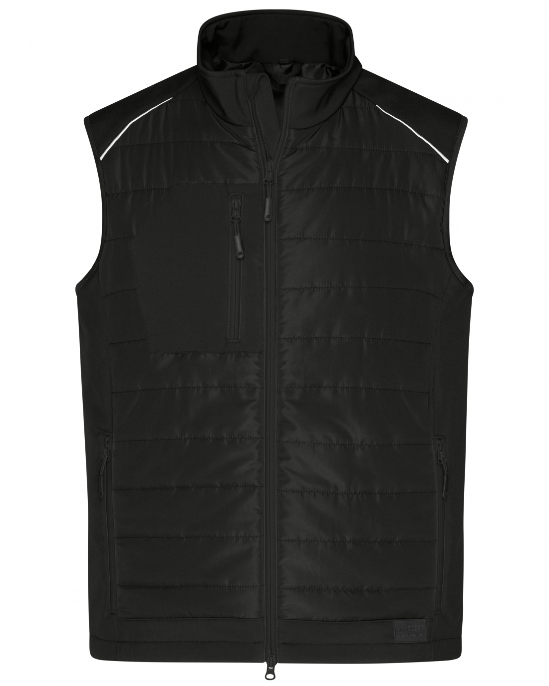 Attraktív alapanyag-kombinációból készült hibrid mellény Könnyen kezelhető kétrétegű softshell alapanyag és steppelt betétek kombinációja Víz- és portaszító BIONIC-FINISH®ECO kezeléssel Meleg DuPont™Sorona® vattabélés Állógallér Teljes hosszában fedett kétutas cipzár, viharfüllel és állvédővel Állítható szélességű derékrész Cipzáras mell és oldalzsebek, 1 tépőzáras belső zseb Fényvisszaverő elemek a front- és hátoldalon (nem minősített) Hátoldalon cipzár az emblémázás megkönnyítéséhez YKK cipzárak 100% poliészter, 280 g/m² Rendelhető méretek: XS-6XL