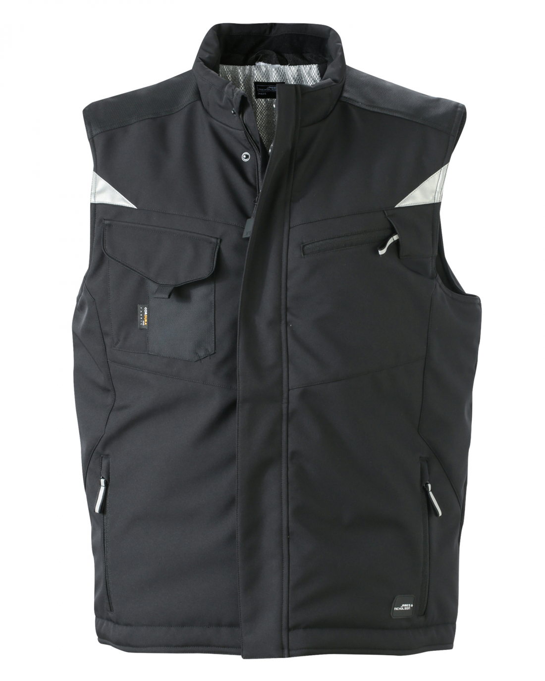 Professzionális softshell munkamellény, meleg béléssel Erős, strapabíró softshell anyag Szél - és vízálló (2000 mm vízoszlop nyomásig) Légáteresztő, páraelvezető (2000 g/m²/24h) Állógallér belül puha polár béléssel CORDURA® erősítésű vállrész Teljes hosszában fedett cipzár viharhajtókával Cipzáras oldal-, mell- és belső zsebek Mellzseb hajtókával, belső mobiltelefon zseb Fényvisszaverő betétek elől és hátul Hátul rejtett cipzár az emblémázás megkönnyítéséhez Külső felület, bélés és vattabélés: 100% poliészter Díszítő betétek: 100% poliamid Rendelhető méretek: XS-6XL
