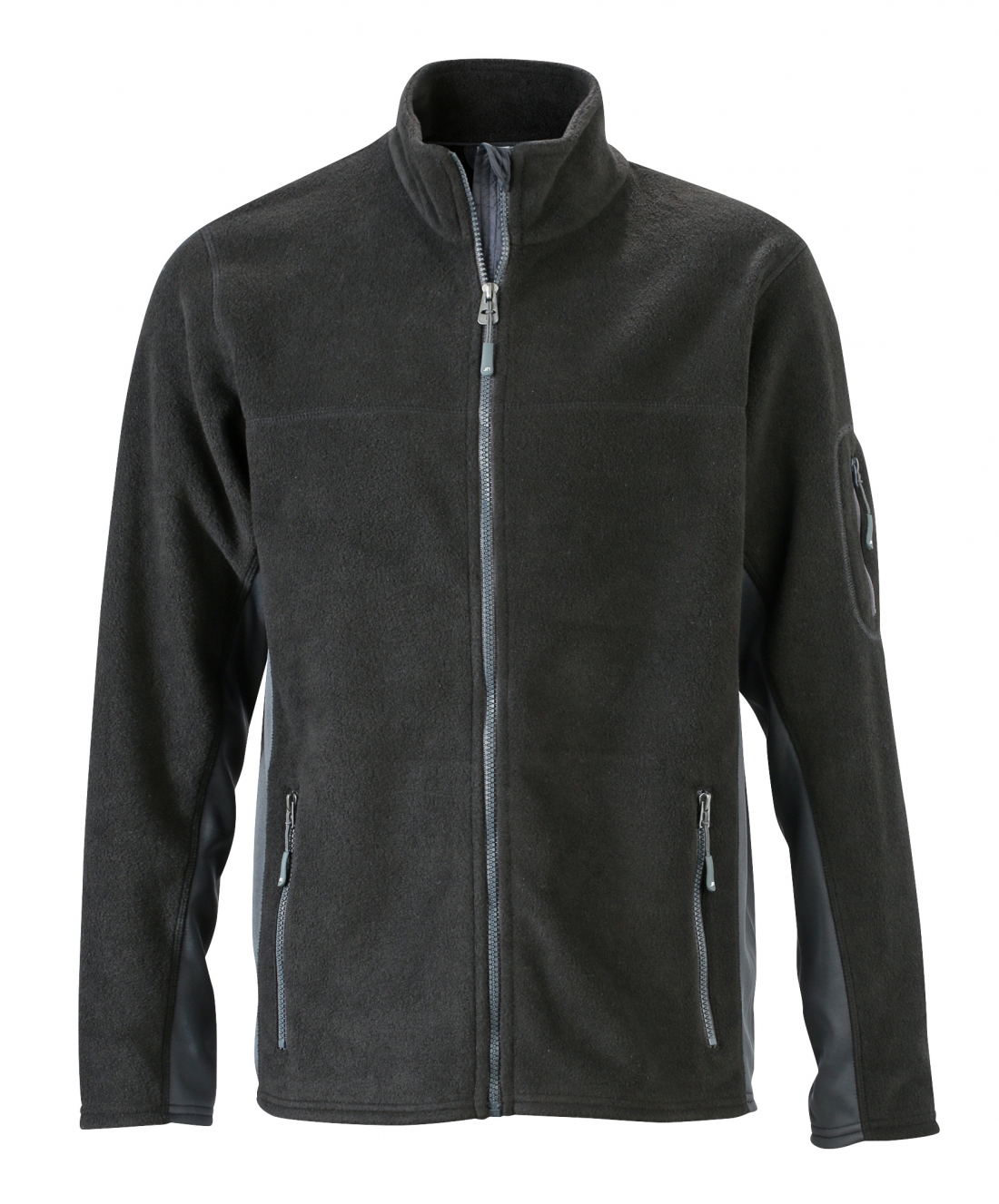 Strapabíró polár pulóver softshell betétekkel, végig cipzáras Könnyen kezelhető bolyhosodásmentes mikropolár Kontrasztos színű elasztikus softshell betétek az ujjakon és oldalt Rejtett cipzár állvédővel Állógallér 2 oldalzseb és cipzáras zsebek a karon 100% poliészter, 280 g/m² Rendelhető méretek: XS-6XL